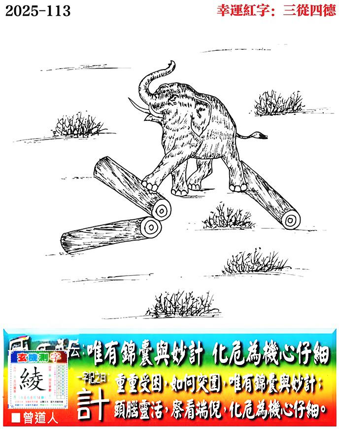 113期老版跑狗一字記之曰:【計】 詩雲:唯有錦囊與妙計,化危為機心仔細。