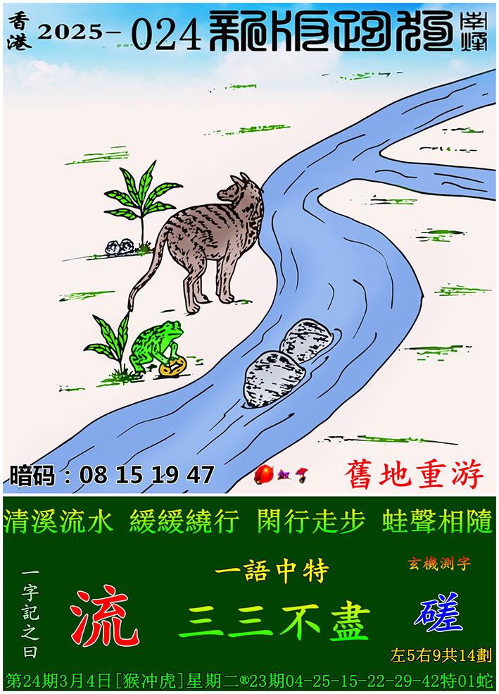 024期新版跑狗一字記之曰:【流】 玄機測字:《磋》 一語中特:三三不盡