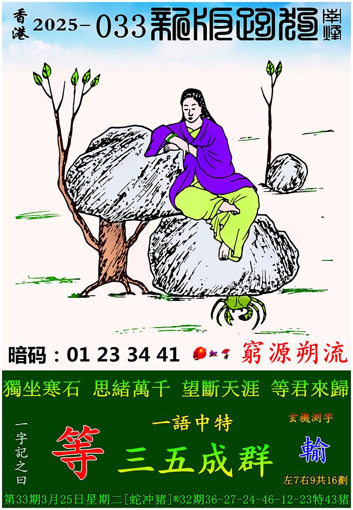 033期新版跑狗一字記之曰:【等】 玄機測字:《輸》 一語中特:三一成群