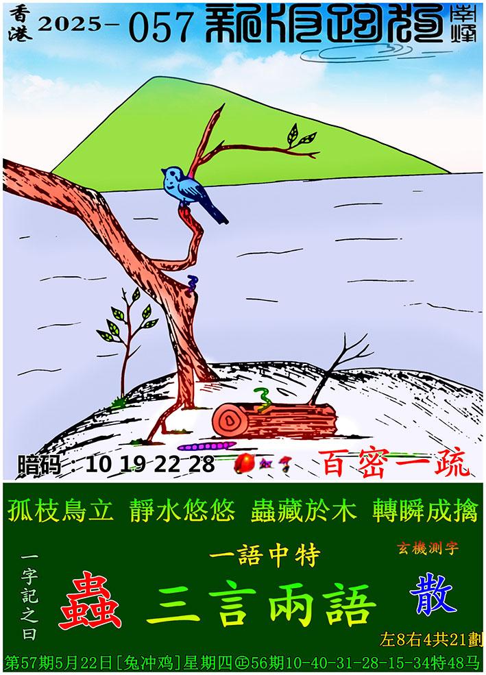 057期新版跑狗一字記之曰:【蟲】 玄機測字:《散》 一語中特:三言兩語